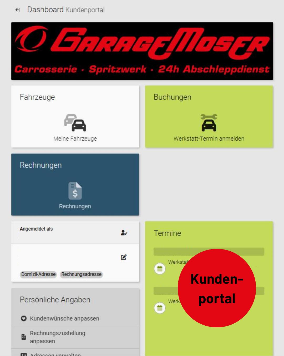 Mit der Registration in unserem Kundenportal können Sie neu Rad- und Reifentermine buchen und gebuchte Termine einsehen. Zudem können Sie mehrere registrierte Fahrzeuge erfassen sowie die Rechnungen verwalten. Mehr erfahren Sie auf der Seite des Kundenportals.