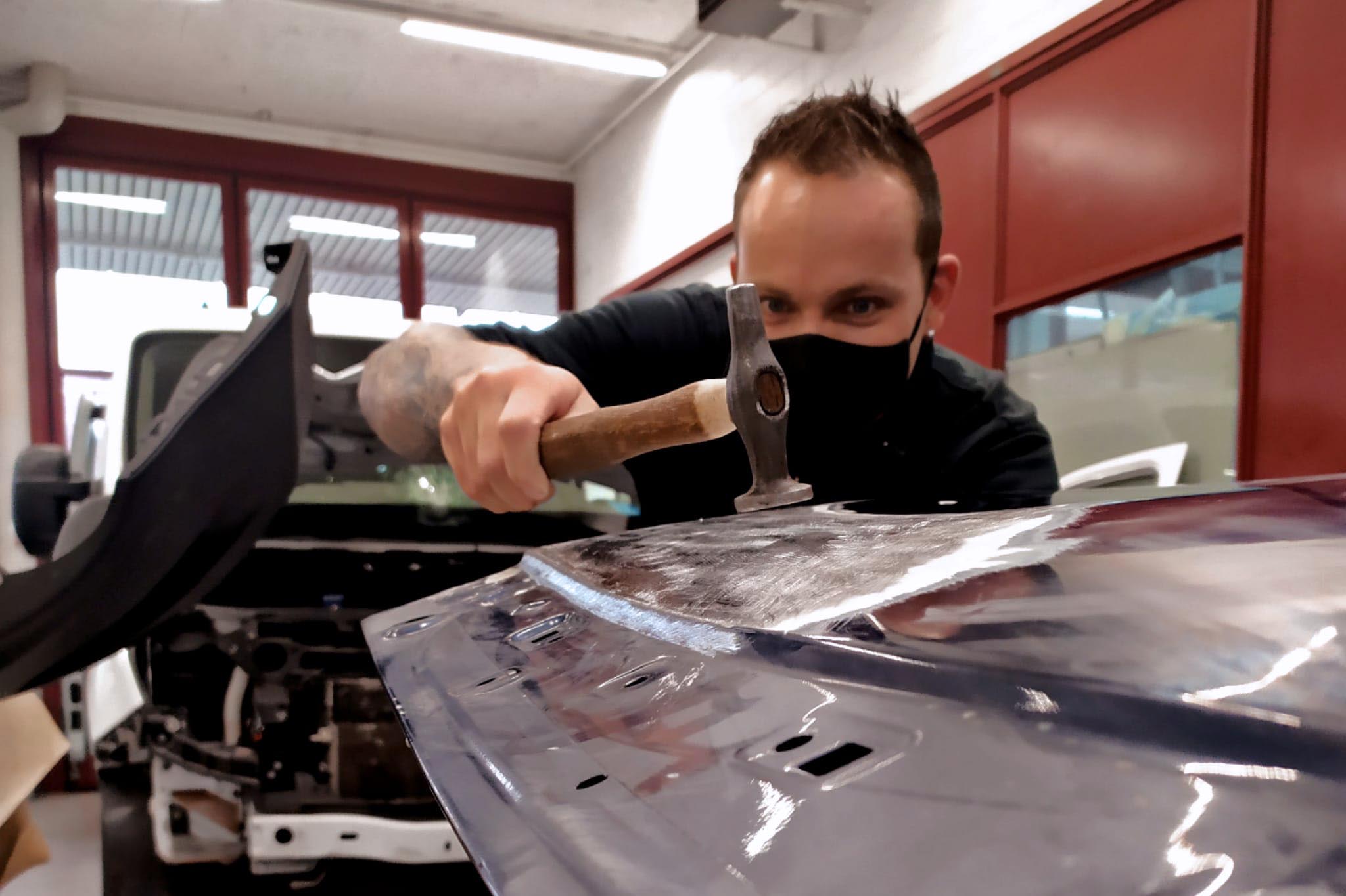 Hauptsächlich kümmere ich mich um die Reparatur von Carrosserie-Schäden, wie zum Beispiel Beulen. Häufig arbeitet auch ein Lernender mit mir zusammen. Das Weitergeben von Wissen und das Beobachten der Entwicklung grossen Spass macht.